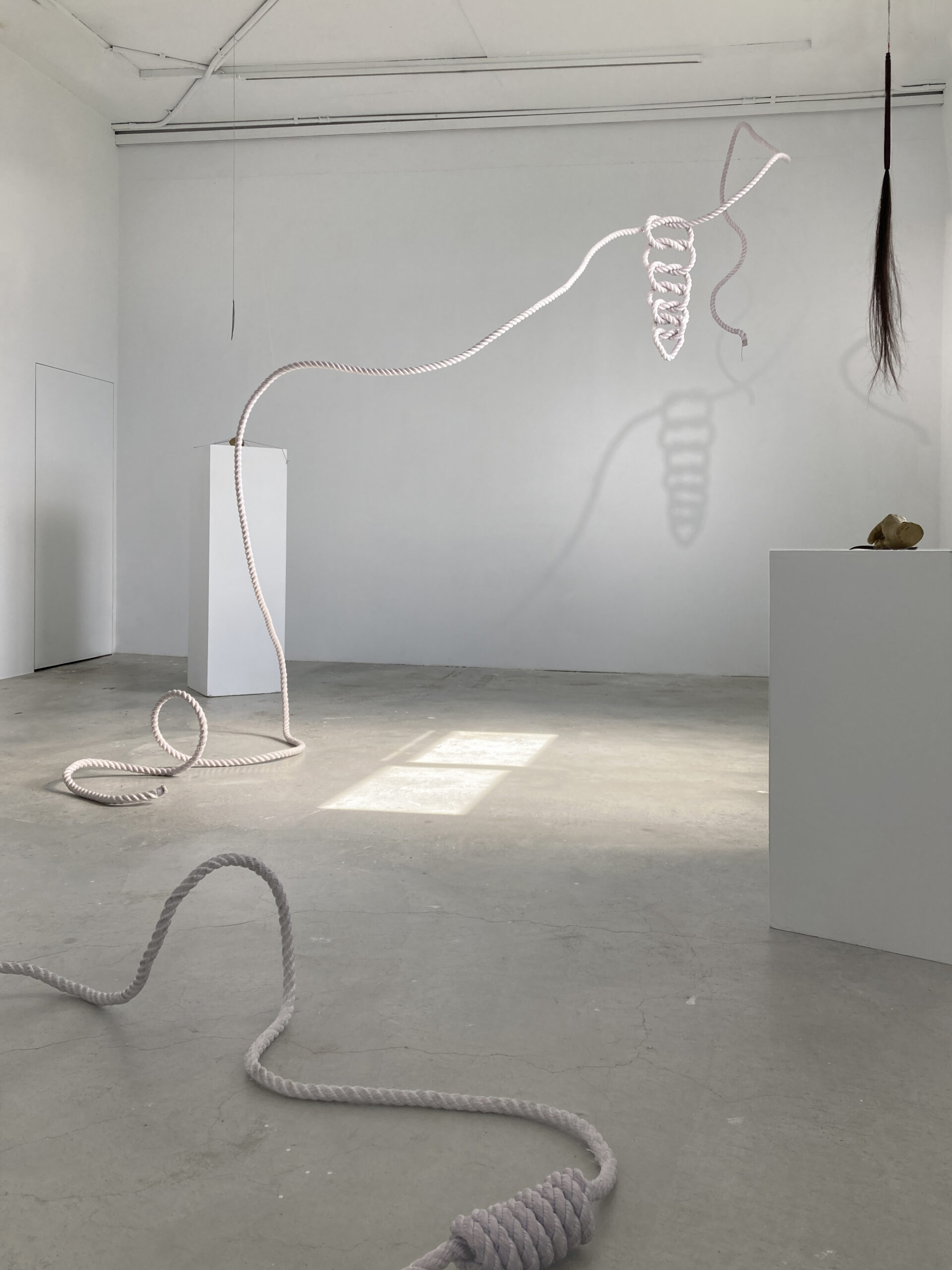 In her project clear the air - 心結, Yen-Chao revisits the ancient Chinese art of knot-making, once used as a means of recording events through fibre patterns. With time, the meanings embedded in these knots have faded, eroded with the materials themselves. Today, Chinese knot-making is a fading craft, yet it remains omnipresent in Taiwan’s daily life, carrying a quiet resilience. In this work, a closed, three-dimensional curve unravels and tangles, visually documenting time-based rituals and labour. Each knot encapsulates a moment—a small challenge that holds a fleeting feeling, a thread of lived experience. Yen-Chao uses this process to confront questions of belonging and estrangement, asking: how do we untie the knots of the heart that bind us, yet simultaneously hold us apart?